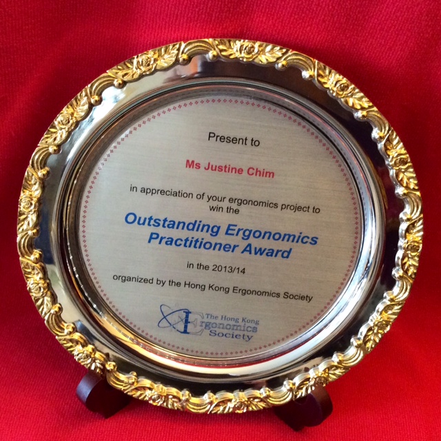 Ms. Justine Chim, Principal Consultant, received the Hong Kong Ergonomics Society Outstanding Ergonomics Practitioner Award 2013/2014.This is Justine's second time to receive the Outstanding Ergonomics Practitioner Award given by the Society.
